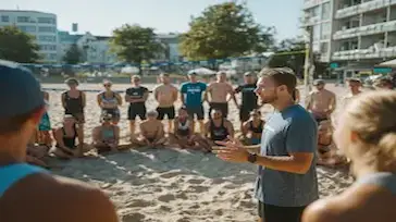 Bei uns stehen nur Top-Trainer im Sand mit jahrelangen Spielerfahrung, die das Spiel auf Profi-Niveau beherrschen. Aber wir sind mehr als nur Technik: Wir schaffen eine innovative Community, in der Professionalität auf einen coolen, nahbaren Vibe trifft.
